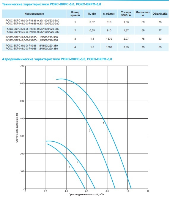 Вентиляторы выпускают с двумя типами рабочих колес РК635 и РК935 с различными расходными характеристиками.
