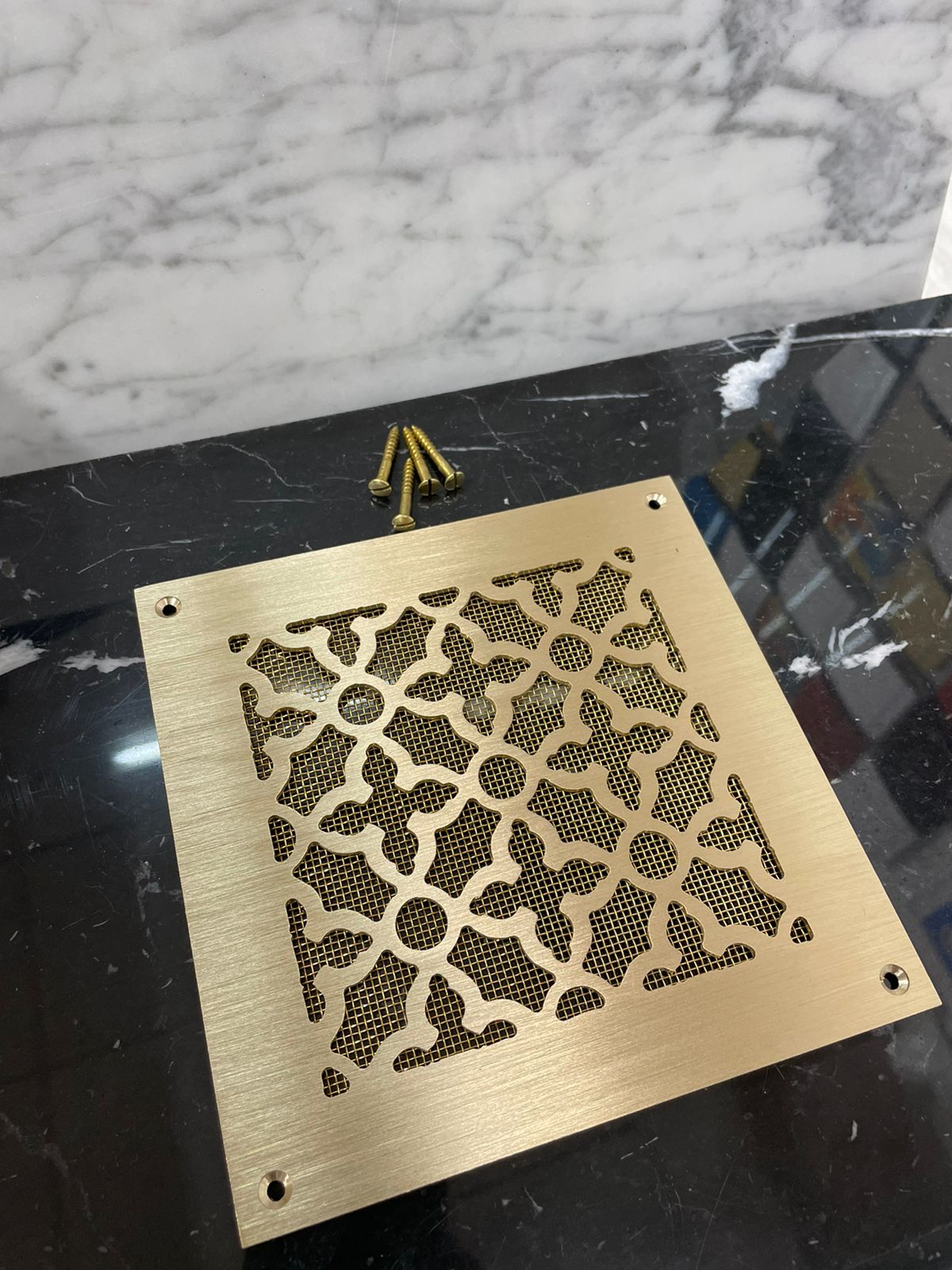 • Эта декоративная вентиляционная решётка может быть изготовлена из различных материалов: алюминий, сталь, латунь, нержавеющая сталь.