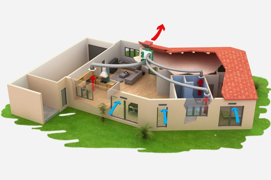 Многозональные вентиялторы служат для установки вытяжки всего дома, обеспечивающие постоянное обновление воздуха в отдельных жилых домах или многоквартирных домах. Регулируемые по влажности вытяжные клапаны, расположенные в разных помещениях (кухня, ванные комнаты и туалет), и воздухозаборники, расположенные в основных комнатах (столовая и спальни), позволяют постоянно поступать новому воздуху.