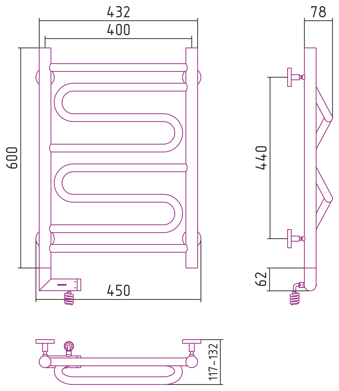 Полотенцесушитель электрический Сунержа Элегия 2.0 600x400