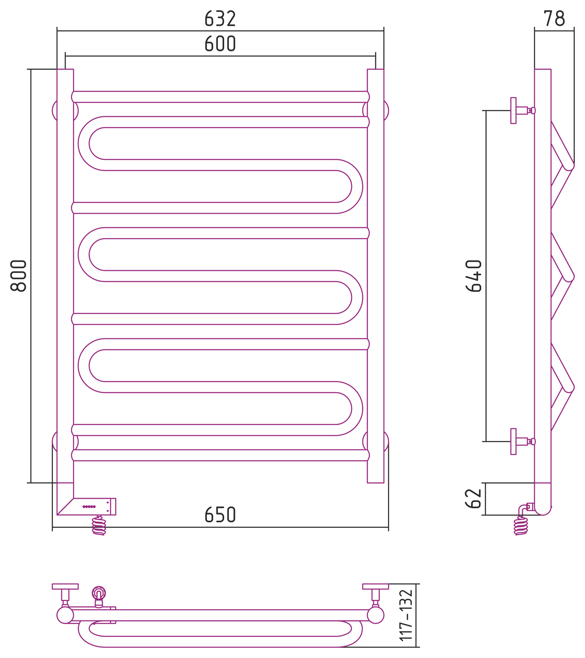 Полотенцесушитель электрический Сунержа Элегия 2.0 800x600