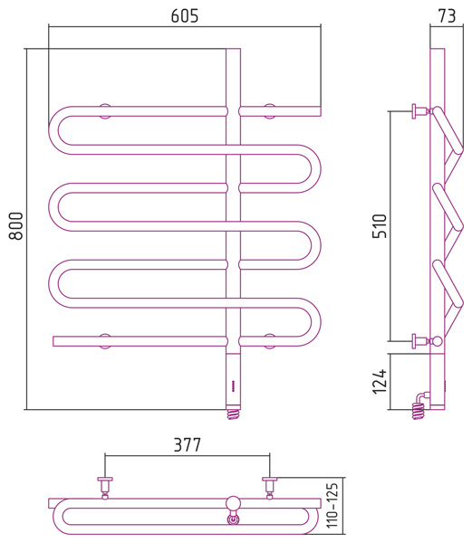 Полотенцесушитель электрический Сунержа Эпатаж 800x600 правый