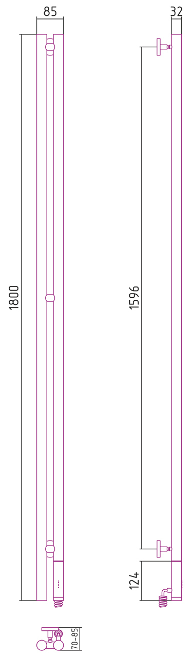 Внешние габариты (высота х ширина х глубина)(мм) : 1800x85x70-85