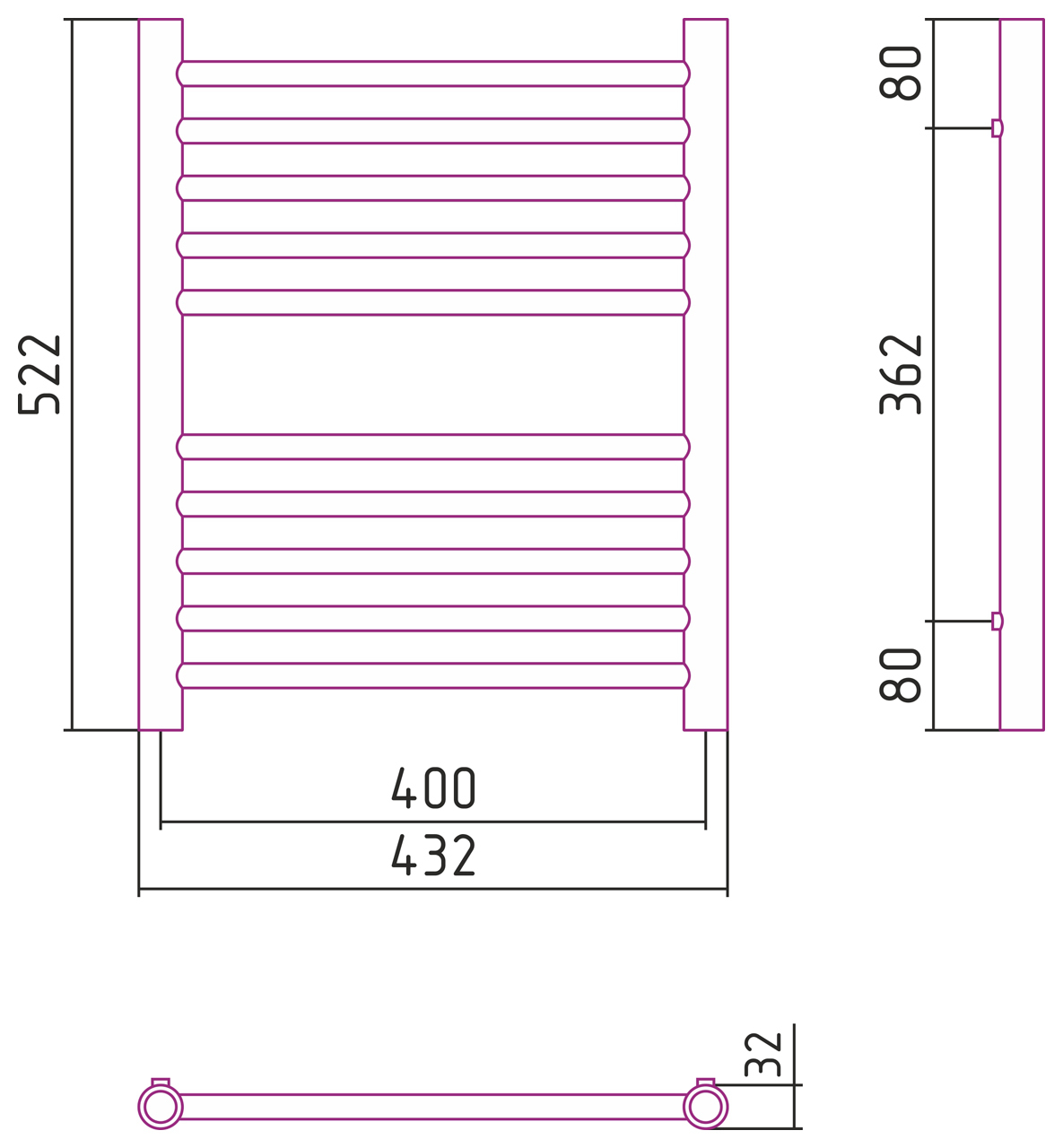 Полотенцесушитель комбинированный Сунержа Богема-ПРОФИ прямой 600x400. 00-5102-6040