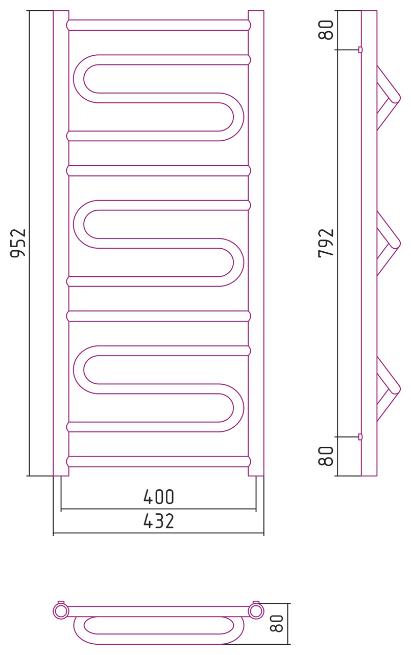 Размер полотенцесушителя:1000x400