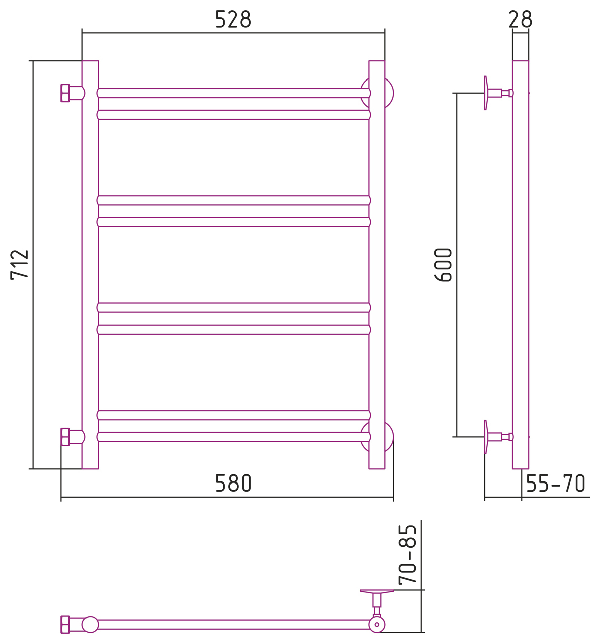 Полотенцесушитель водяной Стилье Версия-Б1 600x500