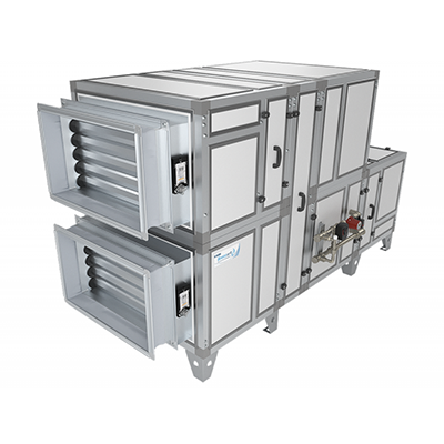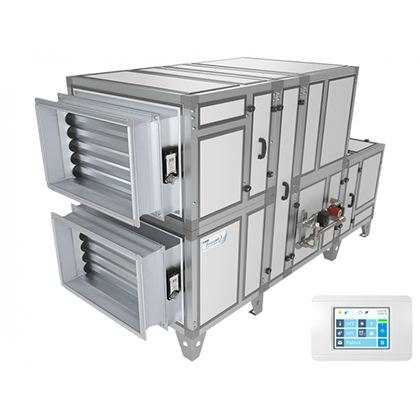 • Приточно-вытяжная установка напольного типа с противоточным пластинчатым рекуператором, системой защиты от замерзания, эффективный рабочий температурный диапазон до -35°С.