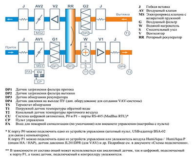 • Управление увлажнителем воздуха с пульта вентустановки.